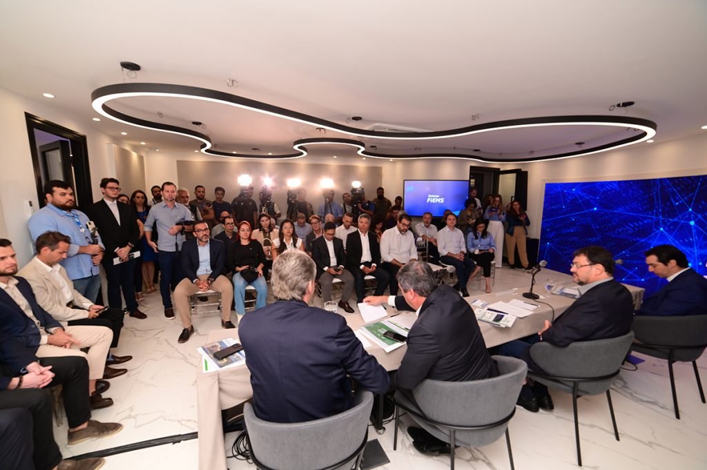 Como parte da programação do mês da indústria, o presidente da Fiems, Sérgio Longen, recebeu jornalistas dos principais veículos de comunicação em Mato Grosso do Sul para coletiva de imprensa na quarta-feira (7), acompanhado do governador do Estado, Eduardo Riedel. Durante o encontro, foram apresentados os principais indicadores econômicos da indústria, os novos investimentos privados no setor industrial e as discussões mais recentes sobre sustentabilidade e transição energética em Mato Grosso do Sul.
