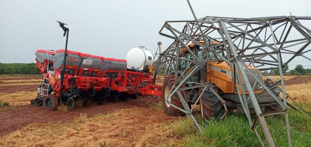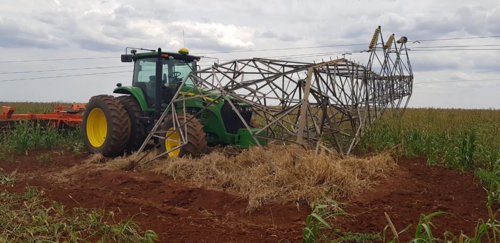 – Na movimentação de máquinas e tratores, cuidado com os cabos de aço que prendem os postes e torres ao chão. Desvie deles. Esses cabos seguram os postes e não devem ser cortados e nem mudados de lugar;
