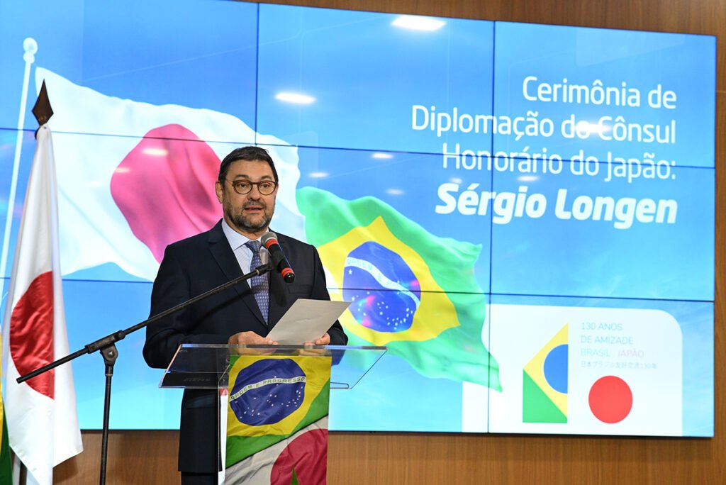 “É o primeiro cônsul honorário da história de Mato Grosso do Sul. Sérgio, além de exercer uma liderança forte no Estado, como presidente da Fiems, também cultiva laços familiares com a comunidade através da sua esposa, Adriana Sato, nipo-brasileira de segunda geração. São motivos que mais do que o habilitam a trabalhar com a nossa embaixada”, destacou.