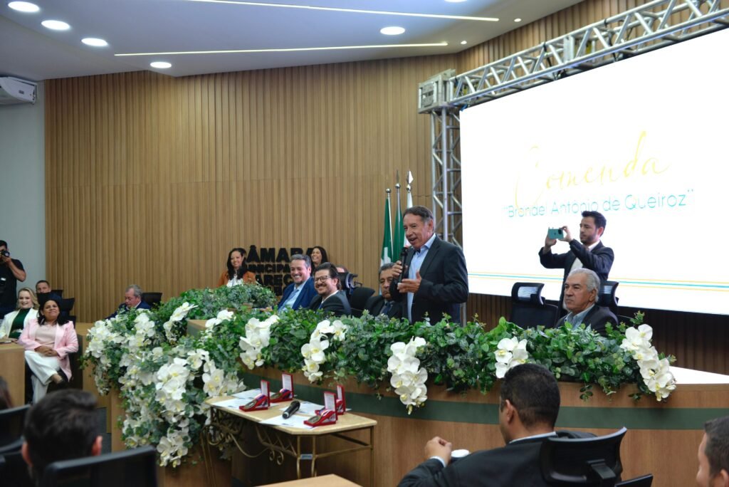 O presidente da Assembleia Legislativa de Mato Grosso do Sul, deputado estadual Gerson Claro, foi agraciado na noite de quarta-feira (24) com o título de Cidadão Aparecidense, concedido em sessão solene pela Câmara Municipal de Aparecida do Taboado. A honraria reconhece sua trajetória e a contribuição ao desenvolvimento do município.