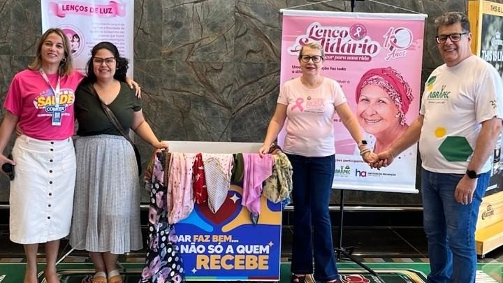 Iniciativa do Grupo Pereira promove arrecadação de lenços em diversas lojas da rede Comper e Fort Atacadista para quem enfrenta tratamento oncológico