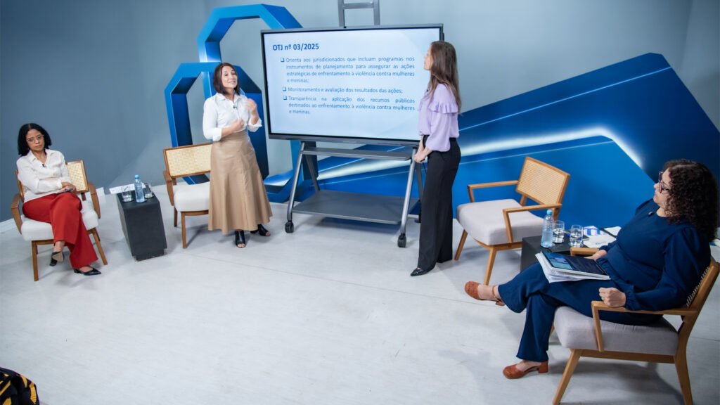 Ao abrir o diálogo, a conselheira Patrícia Sarmento destacou que o objetivo da live era apresentar aos jurisdicionados duas ações essenciais do Tribunal na área de enfrentamento à violência contra a mulher. “A primeira ação é a divulgação da Orientação Técnica Jurisdicional (OTJ) número 03 de 2025. Este documento oferece um conjunto de sugestões e diretrizes técnicas para que os municípios incluam, de forma adequada, recursos destinados à temática nos instrumentos de planejamento e orçamento: o Plano Plurianual (PPA), a Lei de Diretrizes Orçamentárias (LDO) e as Leis Orçamentárias Anuais (LOAs). A OTJ visa garantir o devido planejamento e a execução orçamentária das ações de enfrentamento”, destacou Patrícia.