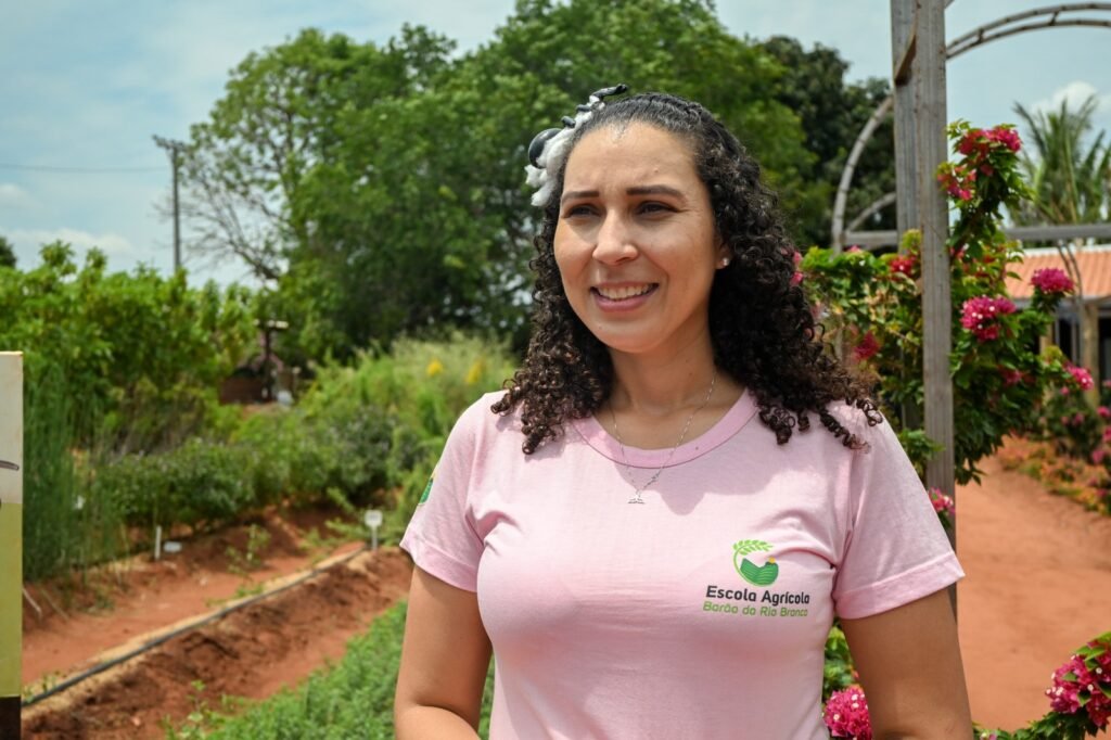 A professora Leuilza Terezinha de Souza Fay, de 38 anos, é chamada carinhosamente de professora Léo pelos alunos. Desde 2019, ensina práticas agrícolas e zootécnicas. “Aqui, o aprendizado é 70% prático. Eles plantam, tratam dos animais, colhem, produzem. É mão na massa o tempo todo”, explica, enquanto mostra o galinheiro onde as crianças cuidam das aves de corte e postura.