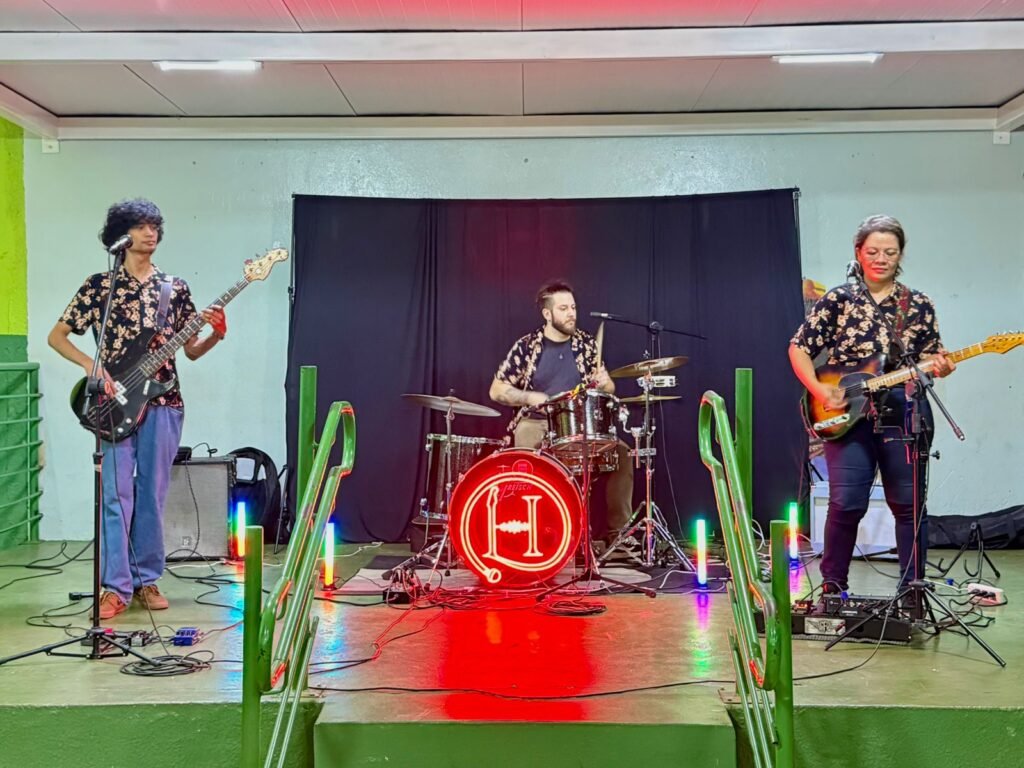 Com um som potente e autoral, o power trio Leca Harper & A Cozinha Cabeluda — formado por Leca Harper (voz e guitarra), Guilherme Napa (bateria) e Gabriel Silva (baixo) — mistura composições próprias com versões de clássicos do rock e do pop nacional, em um repertório que dialoga com o cotidiano e as vivências dos jovens.