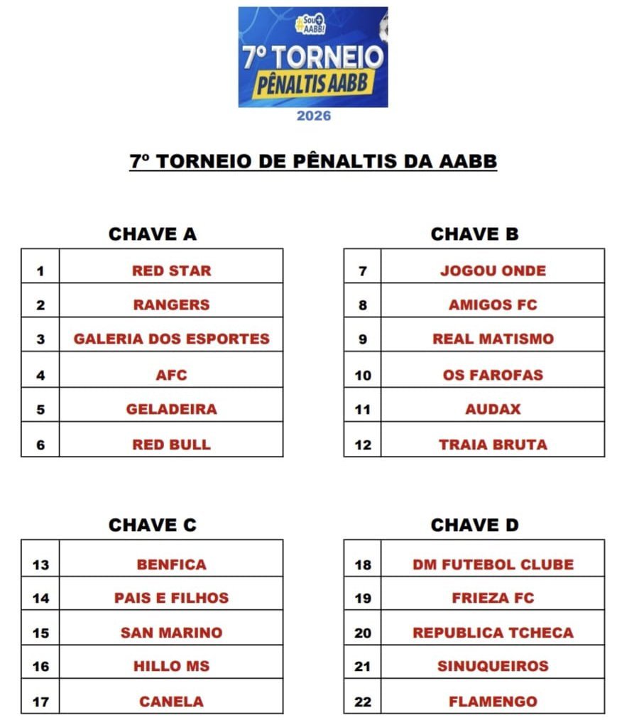 Tabela de Confrontos – 7º Torneio de Pênaltis da AABB